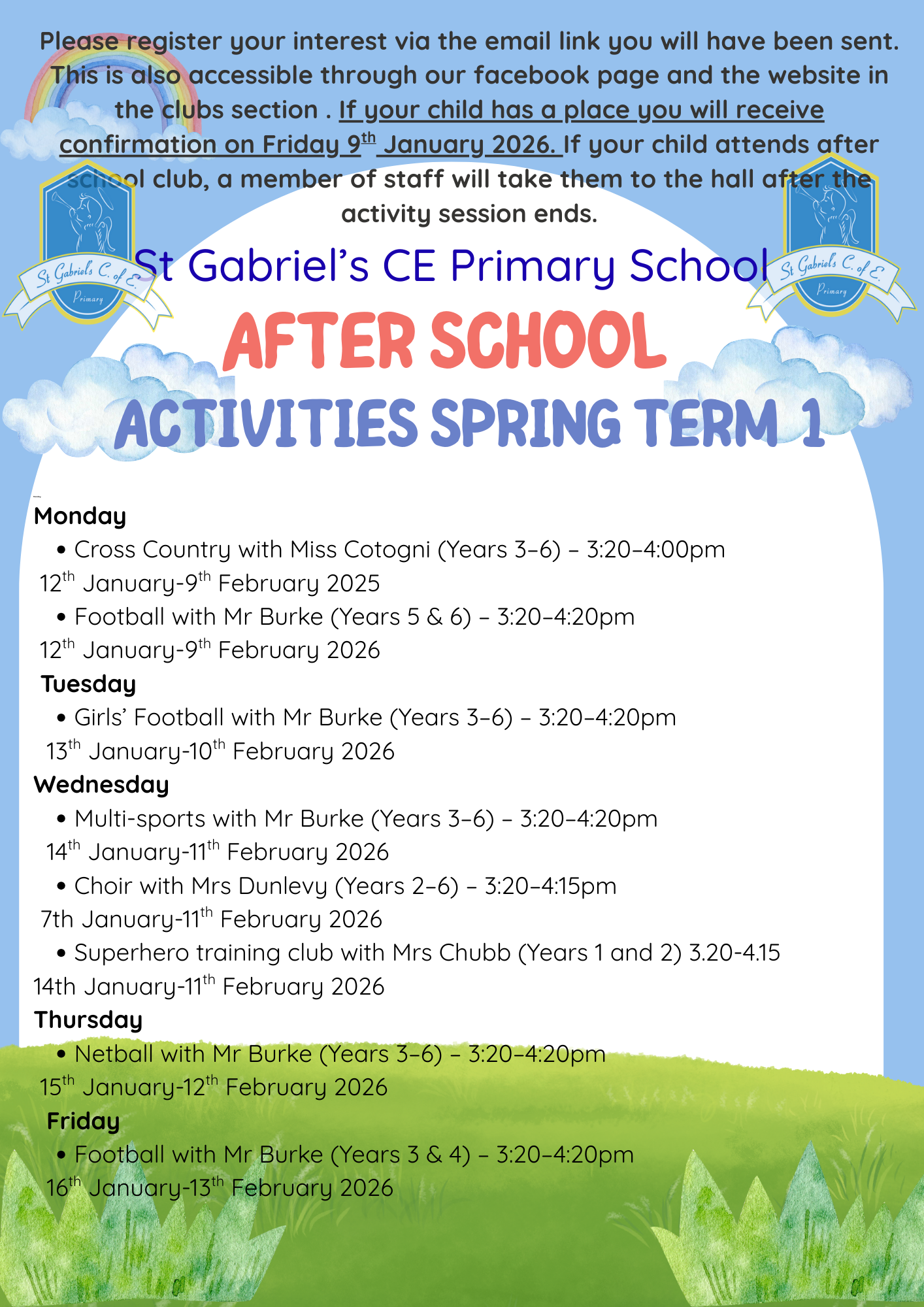 St Gabriel's CE Primary School - After School Activities Jan 2026